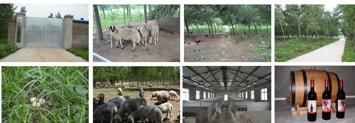 園內(nèi)散養(yǎng)黑豬、白豬,以玉米、麩皮、豬菜喂食,生長期十個月,肉質(zhì)細膩,營養(yǎng)價值高,口感好;散養(yǎng)綿羊、山羊,以園內(nèi)生長青草、野菜為食,肉質(zhì)鮮嫩,營養(yǎng)成分豐富;散養(yǎng)三黃雞、油雞、柴雞,主要以螞蚱、草籽、昆蟲、野菜為食,配以玉米面、豆粕輔助,所生雞蛋富含人體所需多種營養(yǎng)成分、維生素、蛋白質(zhì)和氨基酸。因散養(yǎng)畜禽運動量大,光照充足,風(fēng)吹雨淋,并能在土壤里攝取各種礦物質(zhì),所以體格健壯,極少生病,飼養(yǎng)人員定期喂食園內(nèi)生長的魚腥草、板藍根等植物,預(yù)防疾病。